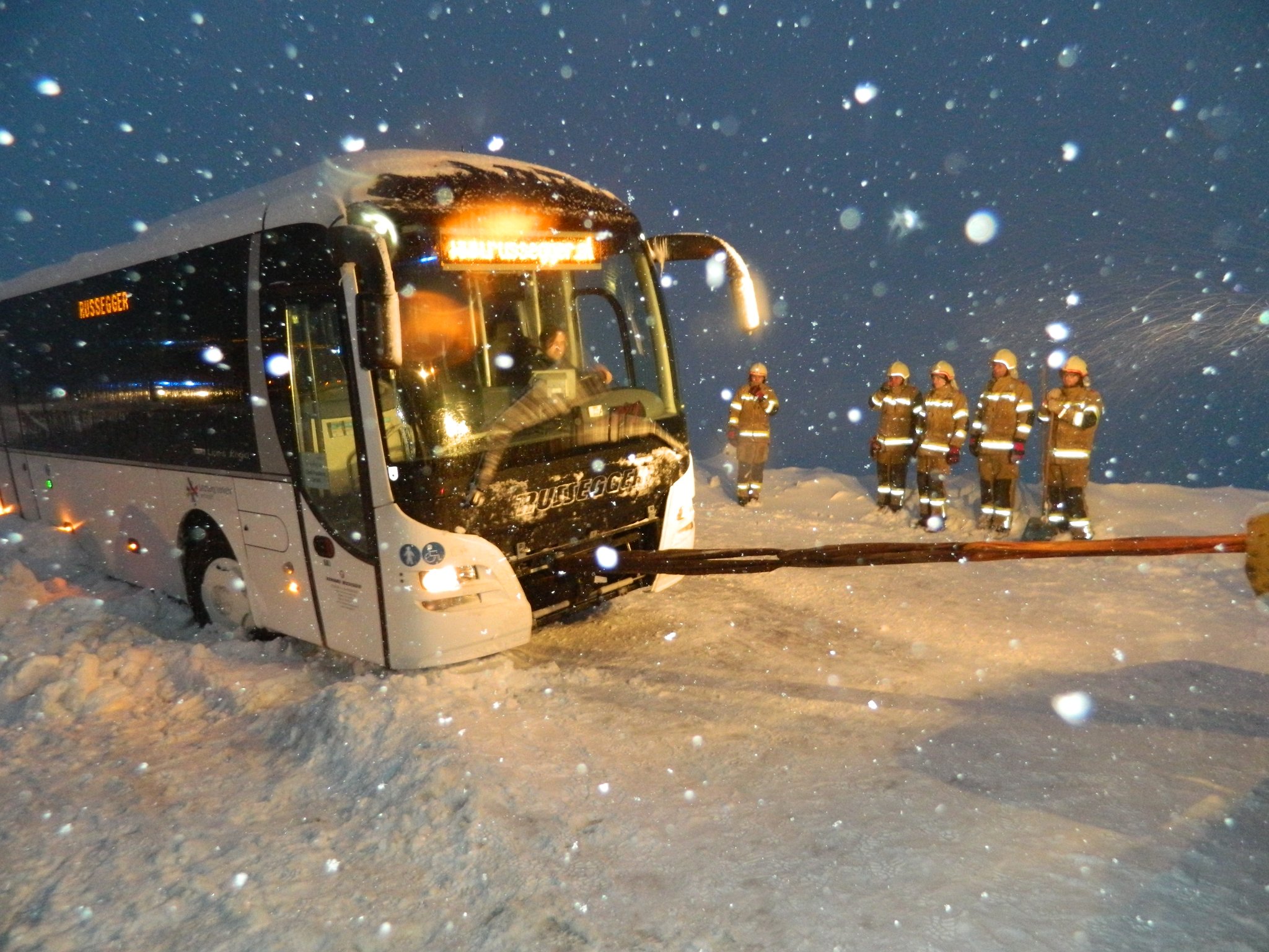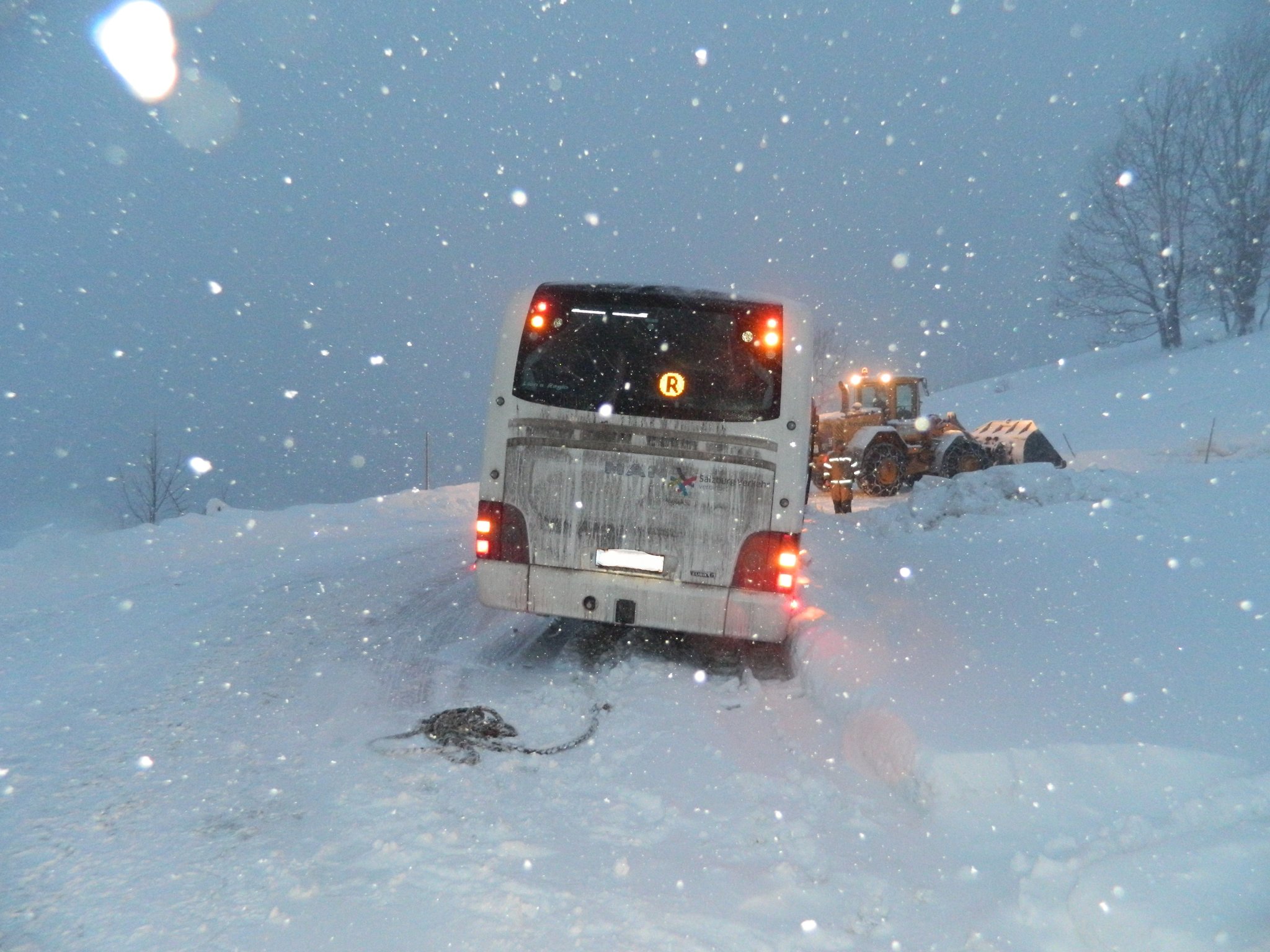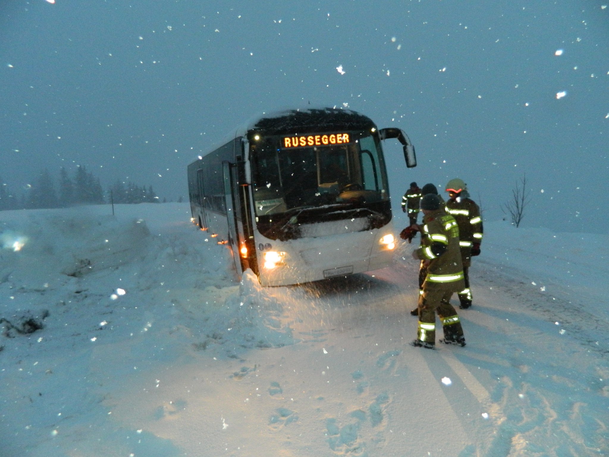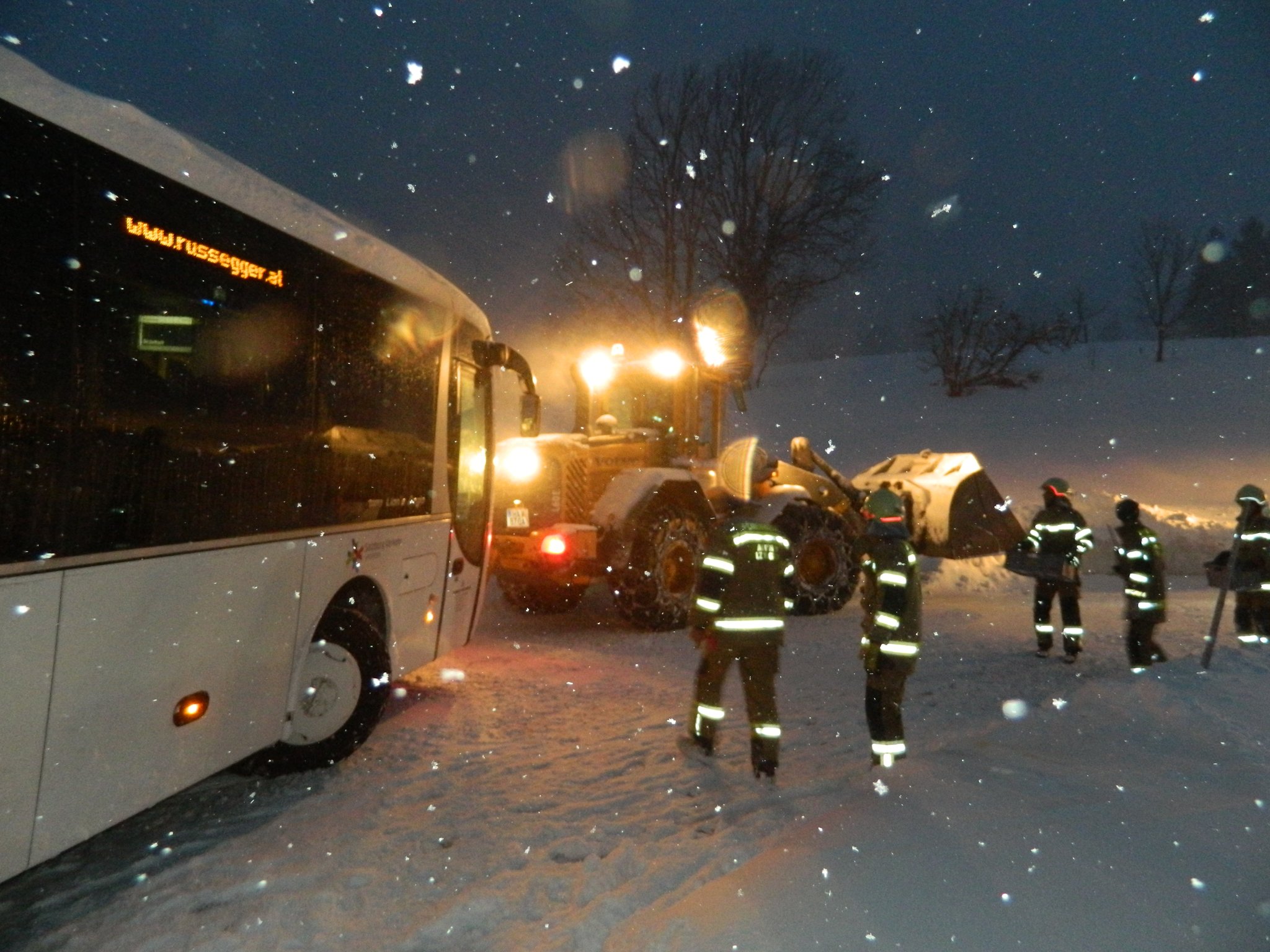Durch ein Ausweichmanöver kam auf der Postalmstraße ein Bus von der Fahrbahn ab und konnte sich nicht mehr von selbst auf die Straße zurück manövrieren. Die Feuerwehr rückte mit 2 Fahrzeugen und 1 Radlader eines heimischen Unternehmens zur Bergung in Richtung Postalm aus.